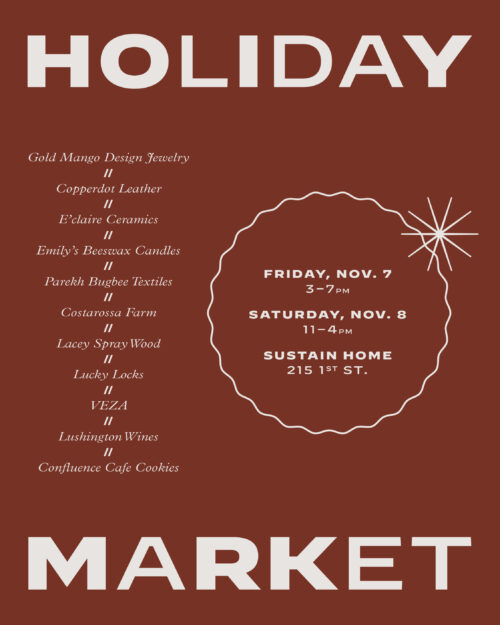Come celebrate with us at our 5th annual Holiday Market! We are excited to host a variety of wonderful makers and artists from the Gorge and Portland area. A perfect time to come enjoy the party and finding a unique handmade gift for anyone you know on your list.