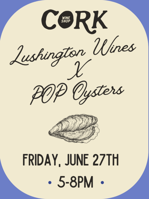 Join Cork Wine Shop in Hood River with Lushington Wines and POP Oysters for a wonderful evening of wine and oysters. Enjoy Cork’s inviting atmosphere and wonderful people.